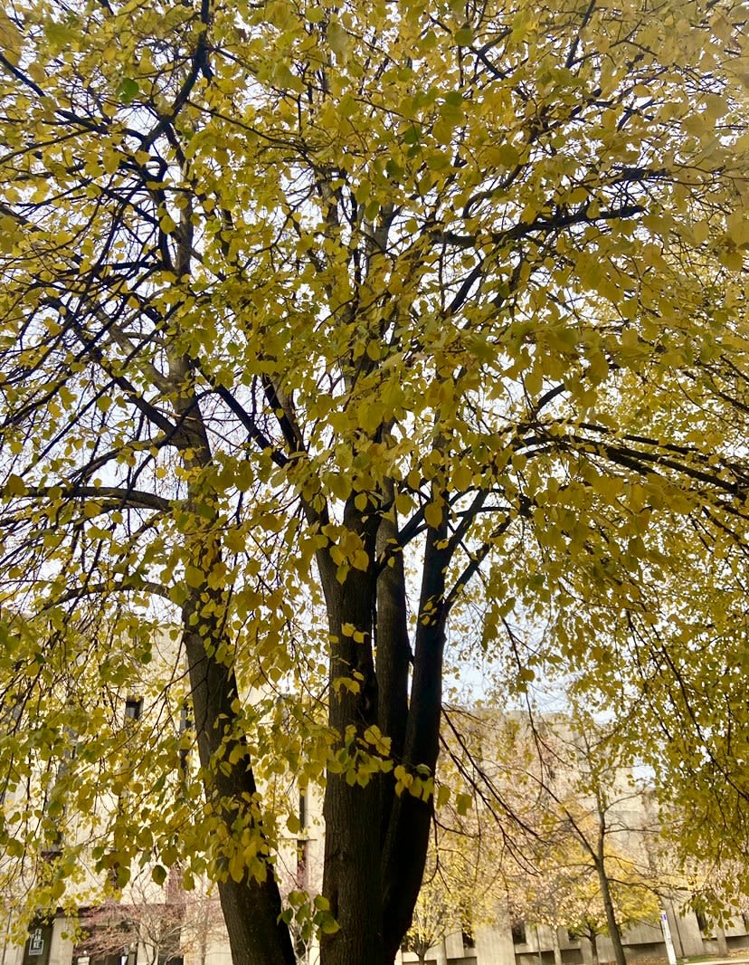 My tree is located next to the entrance of the Bartlett Dining Commons, with quite a few other mature and semi-mature Littleleaf Lindens nearby throughout the courtyard on the east side of the Regenstein Library. The species is native to Europe and southwestern Asia and is frequently used in the U.S. as a street and lawn tree (Tilia cordata - Plant Finder). Based on the University of Chicago’s ArborScope directory, it appears to be a fairly common tree on campus.
