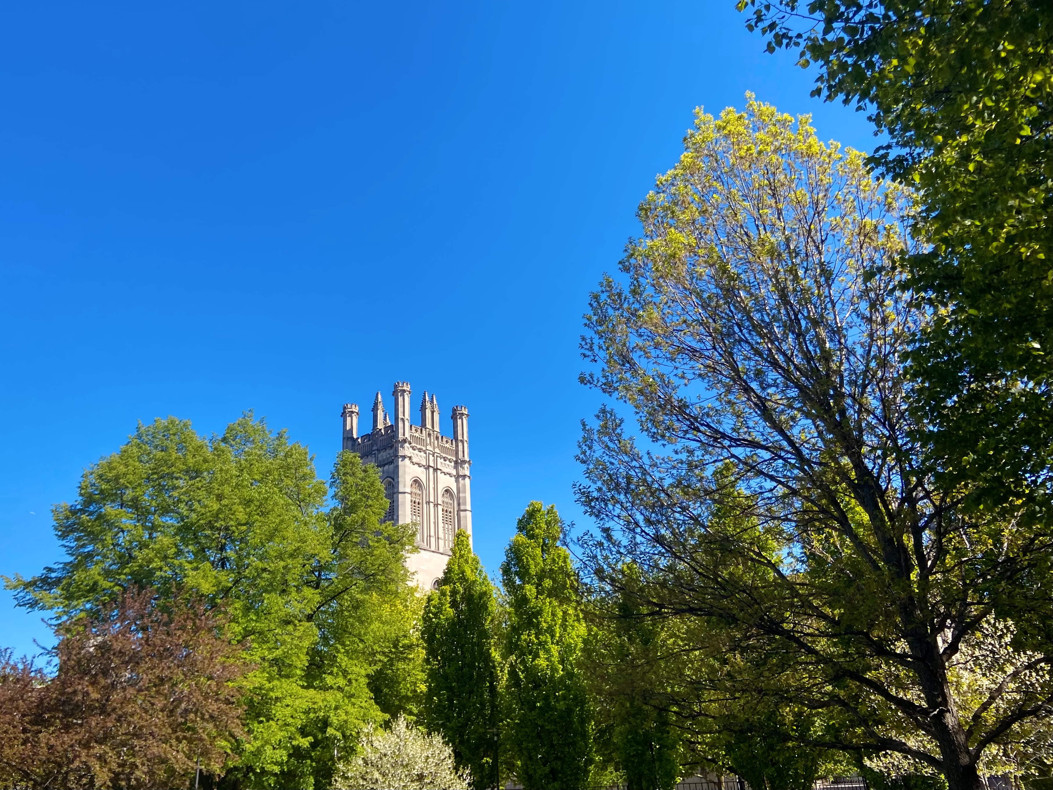 The environment that I interact with consists of deliberately planned green spaces; most commonly, I interact with the Bartlett Quad, where I take plenty of pictures, including this photo that features the top of Reynolds Club in the distance. My Great Nearby also includes roadside green, which consists of trees and bushes planted along roads like 57th Street. Using the frameworks of Aplet and Cole, who created methods for categorizing urban nature, these spaces would likely be considered novel and controlled.