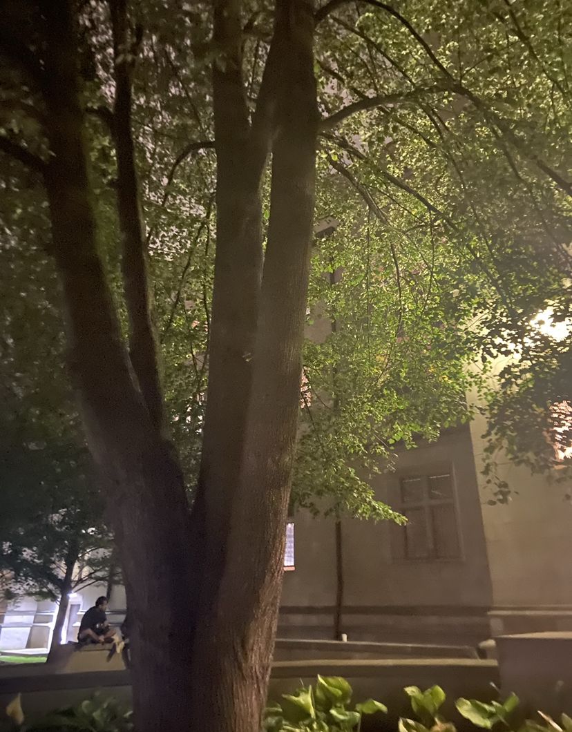 By Week 4, things had started to ramp up—academically, personally, and ecologically. I observed my tree at night because my dorm was playing a game with water guns. The guy that lives in the room across from me, Lucas, went to the dollar store and bought a ton of miniature super soakers. He assigned everyone a target, and over the course of two and a half weeks, residents sprayed their targets across campus. Most commonly, people were hit in the Bartlett Quad while traveling between the dorm and meals.